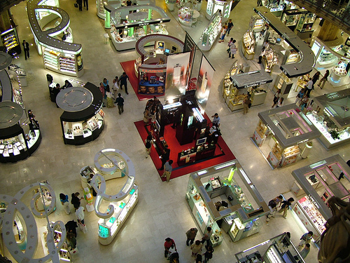 Last week, this weakness got the best of me. After a lengthy day of writing and tutoring, I had plans to meet a friend for coffee. Only traces of the scant makeup I’d put on in the morning remained. Dark circles, intensified by droopy mascara, ringed my eyes. I looked this way partly because I’d applied my makeup while driving that morning, and partly because I’d recently run out of concealer. But the mall was on the way, and I imagined I could pop in to Nordstrom’s quickly and solve two problems – the droopy circles and my need for new concealer – at once.